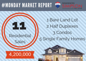 A little momentum as we turn into February…..let’s see if we can start a new trend! We had 11 residential properties change hands last week compared to 6 sales from the week before. Total value of these eleven transactions was just over $4.2 million, compared to $2.5 million the week prior. The highest priced sale was a Single Family Home in the Columbia / Duncan Neighbourhood which sold for more than $650,000. The variance between list price and actual sales price was 98%. This percentage continues to stay strong, always between 96% & 98% on a weekly basis. I still maintain that buyers have the upper-hand in the housing market with lots of inventory currently for sale.